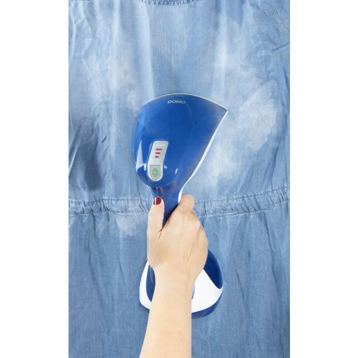 Riempire il serbatoio dell’acqua. Inserire la spina nella presa e premere il tasto on/off. L’indicatore luminoso del pulsante di accensione/spegnimento lampeggia in verde per indicare che l’apparecchio si sta riscaldando. L’apparecchio è pronto per l’uso quando l’indicatore rimane acceso. Dopo circa 25 secondi l’apparecchio è riscaldato. L’apparecchio dispone di 3 livelli di vapore: delicato, medio, massimo. Ogni volta che si preme il pulsante di accensione/spegnimento si cambia il livello. Gli indicatori luminosi mostrano il livello selezionato.